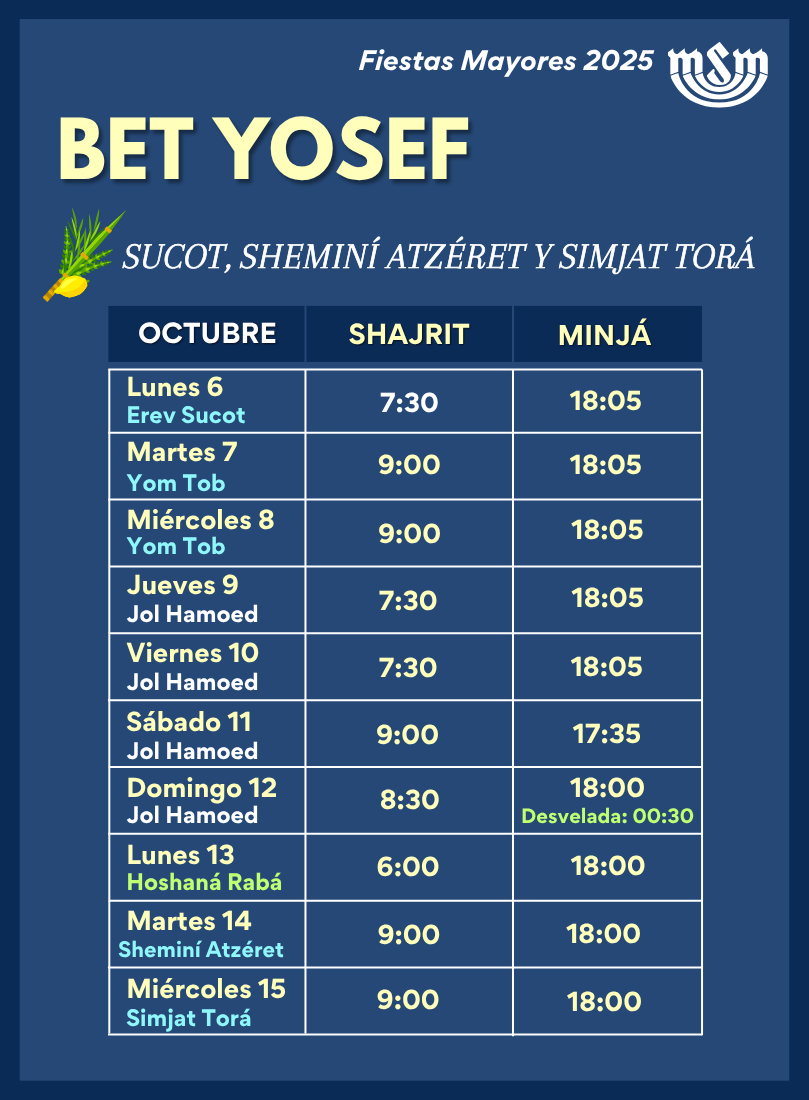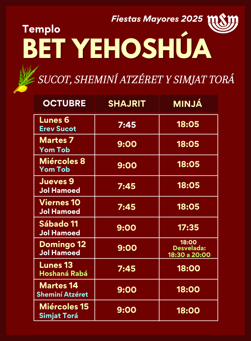 Horarios de rezo: Sucot y Simjat Torá 2025