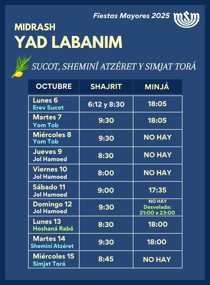 El pasado viernes 10 de octubre, la comunidad vivió uno de los momentos más emocionantes de Sucot con el esperado evento Halel Instrumental, celebrado en el Midrash Yad Labanim. Desde temprano, cientos de familias completas se congregaron para participar en el rezo de Shajrit y elevar sus voces durante el Halel, una serie de salmos que se entonan en festividades como Sucot para agradecer y alabar a Hashem. Lo que hizo de esta ocasión algo único, además de la gran afluencia de gente, fue la fusión entre la espiritualidad y la música en vivo. Con la presencia de los Rabinos Abraham Tobal, Marcos Metta y Marcos Senado, el Halel se transformó en una experiencia sensorial e inspiradora, acompañada por una orquesta de talentosos músicos: Yehuda Silberstein en la guitarra, Isaac Rayek en la batería, y Yaakov Leizorek en el órgano; y como invitados especiales desde Nueva York, el saxofonista Yehoshúa Katzman y el violinista Yosef Bensimon. Tras la ceremonia, un desayuno en la sucá cerró con broche de oro este evento que celebró la alegría de Sucot con música, fe, y unidad comunitaria.