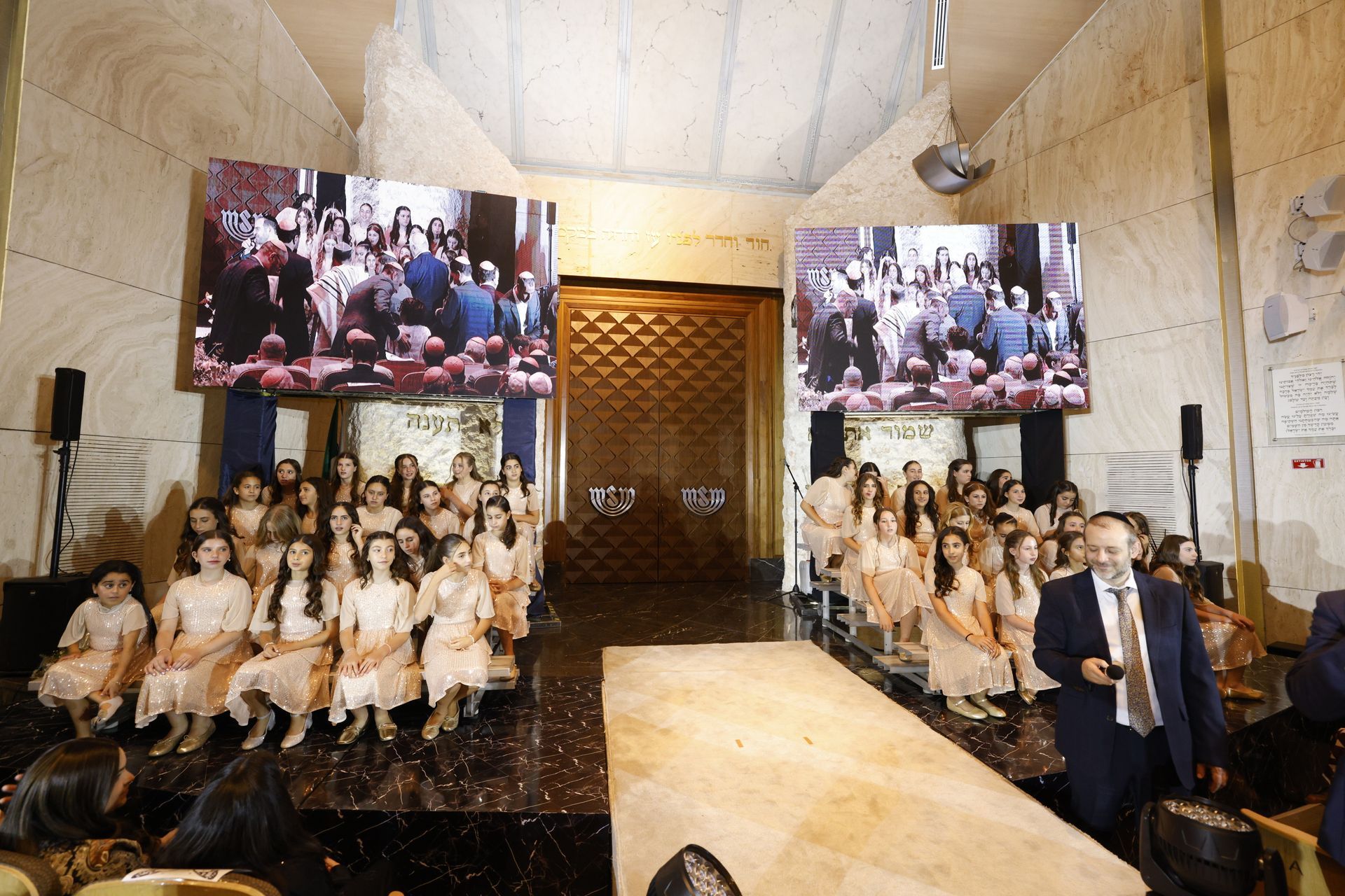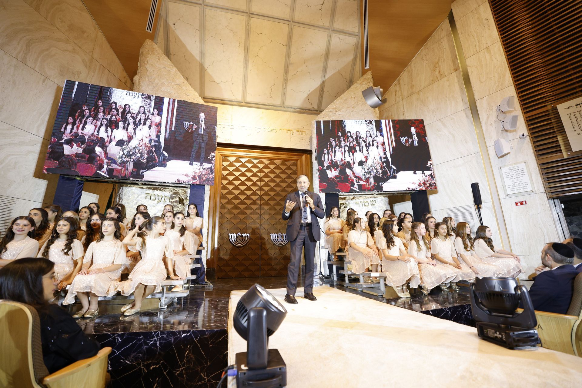 Nuestro Rabino Principal, el Jajam Abraham Tobal, también ofreció unas palabras de inspiración, recordando que el Bat Mitzvá es apenas el comienzo de una vida guiada por la Torá y el sentido comunitario. Con emoción y orgullo, se celebró no solo a las nuevas Benot Mitzvá, sino también a sus papás y mamás, verdaderos pilares en la formación espiritual de sus hijas. ¡Muchas felicidades!